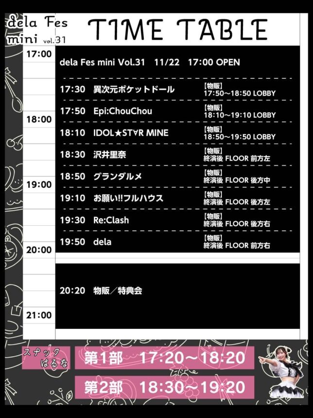 (はるなVIP 21:30~/SS席 22:00~/S席 22:30〜)